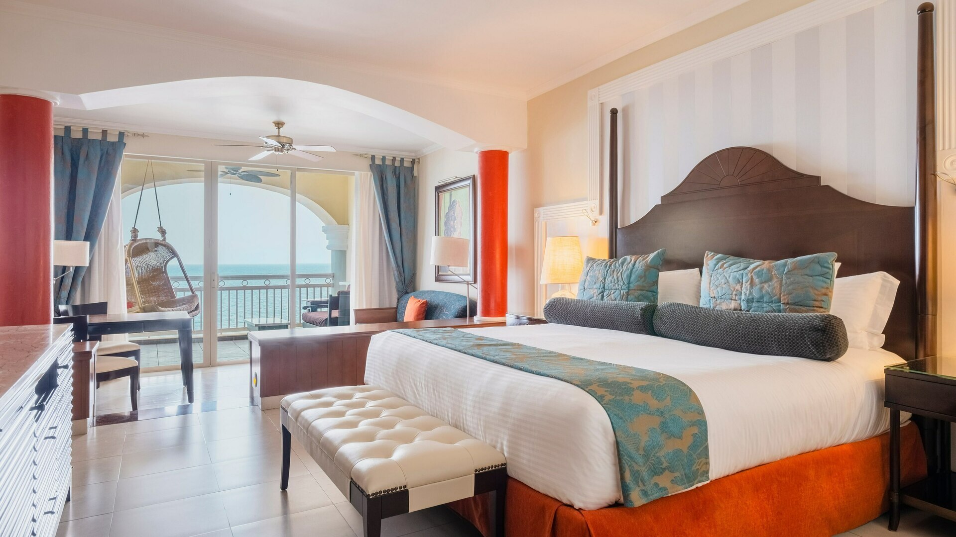 Accommodations at the Iberostar Grand Rose Hall are nothing short of opulent, featuring spacious suites adorned with luxurious furnishings, premium amenities, and elegant décor. Each suite boasts a private balcony or terrace, providing guests with panoramic views of the sparkling ocean or lush tropical gardens, ensuring a serene and indulgent retreat.